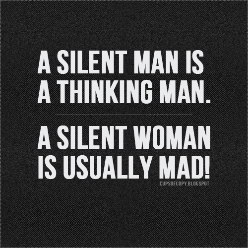 A Quiet Man Is A Thinking Man. A Quiet Woman Is Usually Mad – Bad